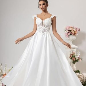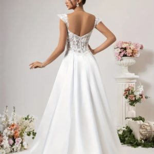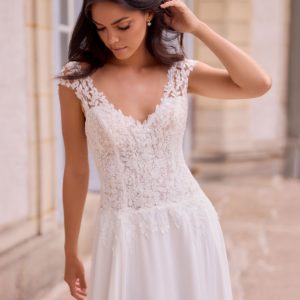Une robe à la fois moderne et intemporelle, idéale pour une mariée élégante et gracieuse.